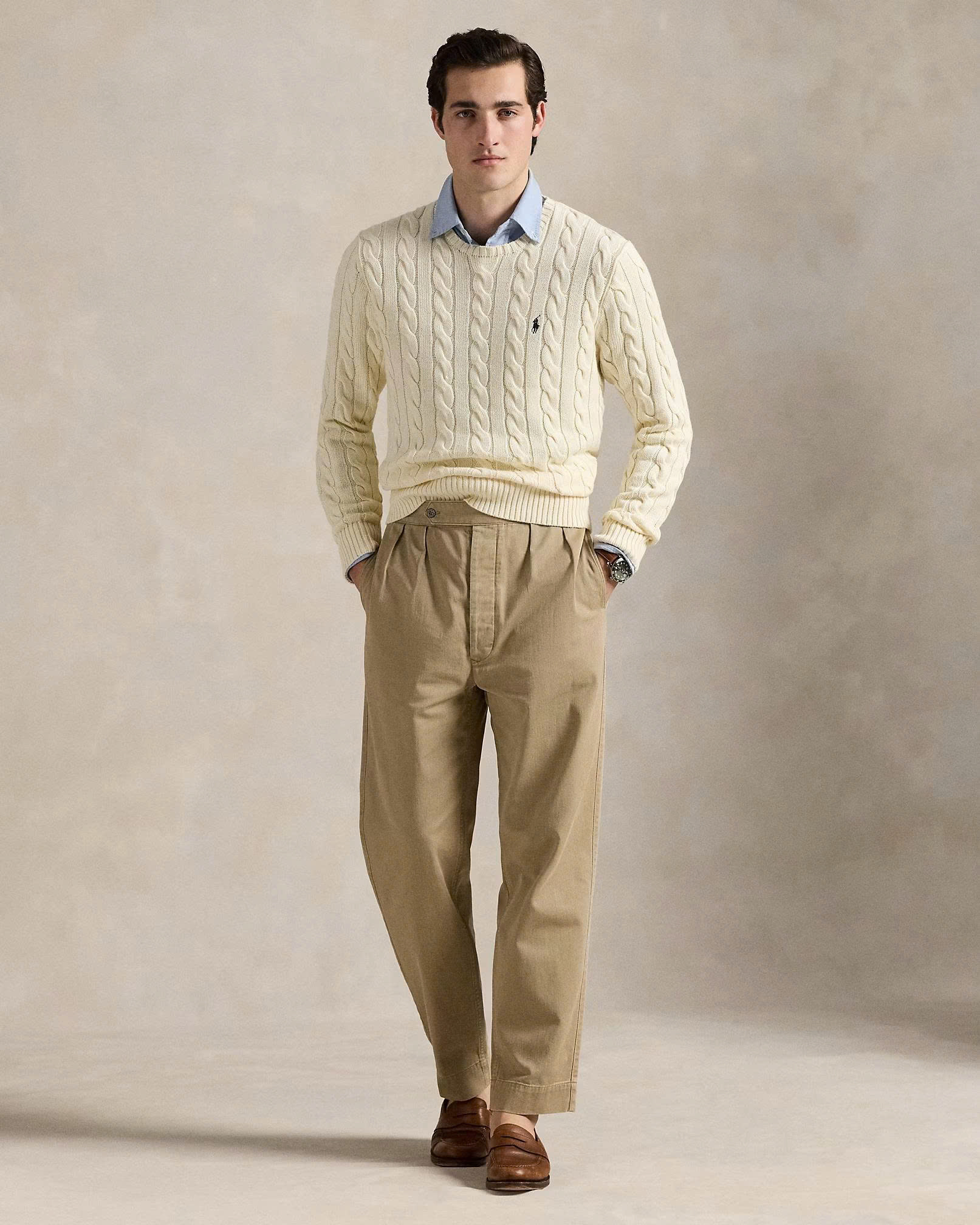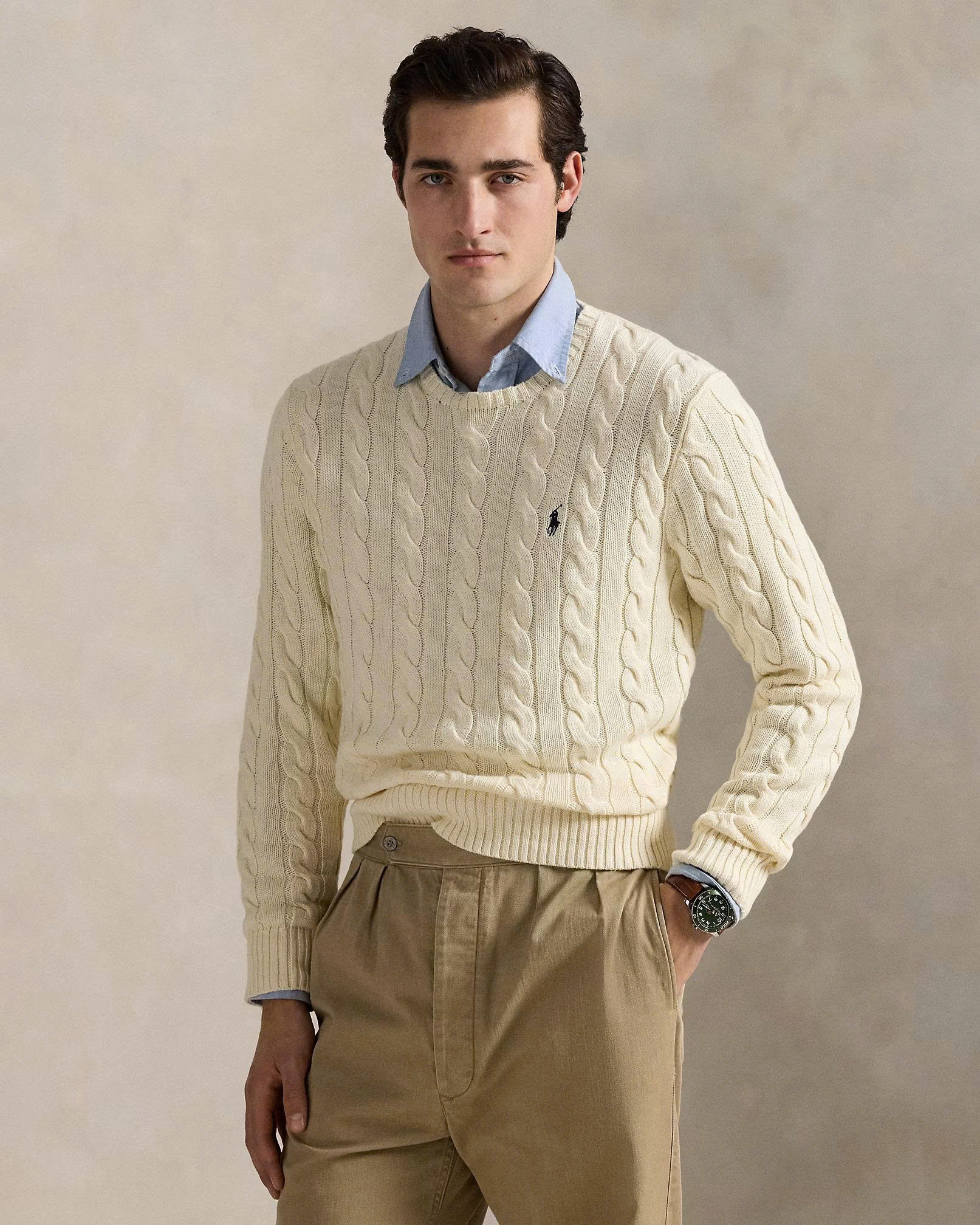 Chiếc áo len Polo Ralph Lauren được làm từ Cotton cao cấp kết hợp hai yếu tố thiết kế mang tính biểu tượng nhất của Polo Ralph Lauren : họa tiết đan cáp và hình chú ngựa Pony thêu đặc trưng của Polo Ralph Lauren