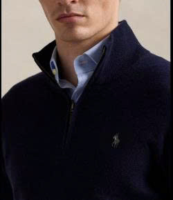 Áo Len Polo Ralph Lauren chế tác ở Ý sang trọng và họa tiết Pony thêu đặc trưng của Polo Ralph Lauren làm nổi bật chiếc áo len có khóa kéo một phần tư này.